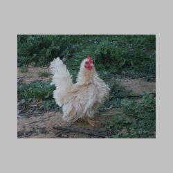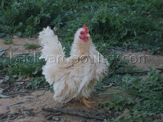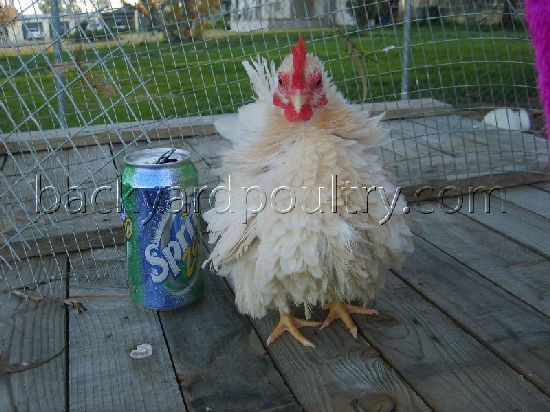 JapaneseClass 2317 Pen abantam frizzled creme hen Exhibitor: George Belling Reserve Champion Softfeather bantam |
